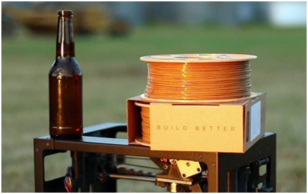 從食物到飲品,啤酒可謂功能多樣。美國纖維生產商3Dom,因其基于咖啡和麻的生物材料而著稱。最近他們研發了一種用啤酒制成的長纖維。急速運行的長纖維有啤酒的天然色彩,主要原料是PLA和啤酒釀造過程中產生的廢渣。3D-Fuel上售賣的500g/卷長纖維價格為39.99美元(約32英鎊)?,F在你能用啤酒來制作啤酒杯,這多么不可思議!